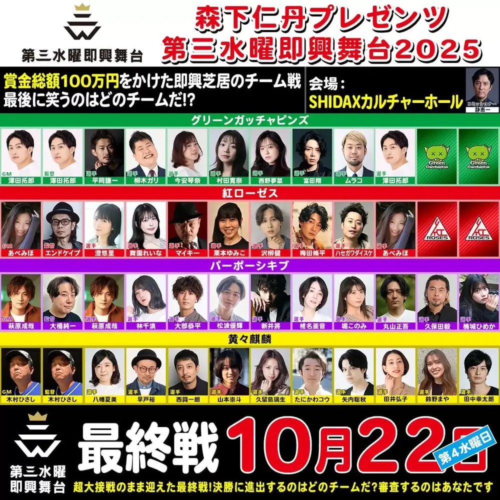 【出演情報】『森下仁丹プレゼンツ 第三水曜即興舞台2025』最終戦 10月22日