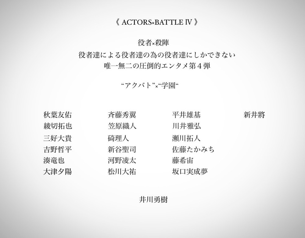【出演情報】《 ACTORS×BATTLE Ⅳ 》 #アクバト