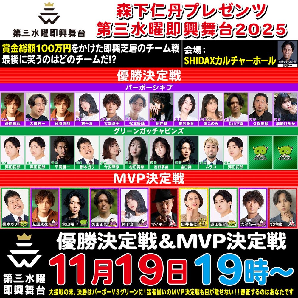 【出演情報】『森下仁丹プレゼンツ #第三水曜即興舞台2025 』優勝決定戦 11月19日